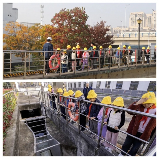 学生们在厂区办公楼前集合,循着平面图标牌的指引,在讲解员的介绍下依次参观了粗格栅、细格栅、生化池、高效沉淀池、出水口等核心处理环节。讲解员将“污水变清波”的复杂科学原理转化为通俗语言,让学生们直观了解污水净化的完整流程。