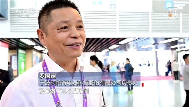 宁波阿帕奇电器科技股份有限公司董事长罗国定在广交会现场接受央视记者采访。
