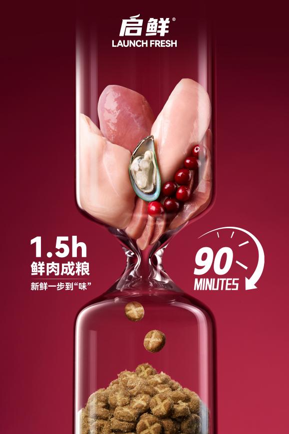 启鲜宠粮功能性鲜肉烘焙系列,采用无抗生素肉源,拒绝肉粉、谷物、麸质添加,依托自有10万级净化车间与全自动化生产线,无需辐照处理,从源头杜绝肠道刺激风险,原料经0-4℃全程锁鲜运输,最大程度保留新鲜度与营养活性。同时,全系列产品搭载美毛护毛功效,添加裂壶藻油、肌醇、蛋氨酸、生物素四重营养成分,形成 “由内而外” 的美毛护毛体系,帮助狗狗改善毛发干枯、易掉、皮肤敏感的问题。