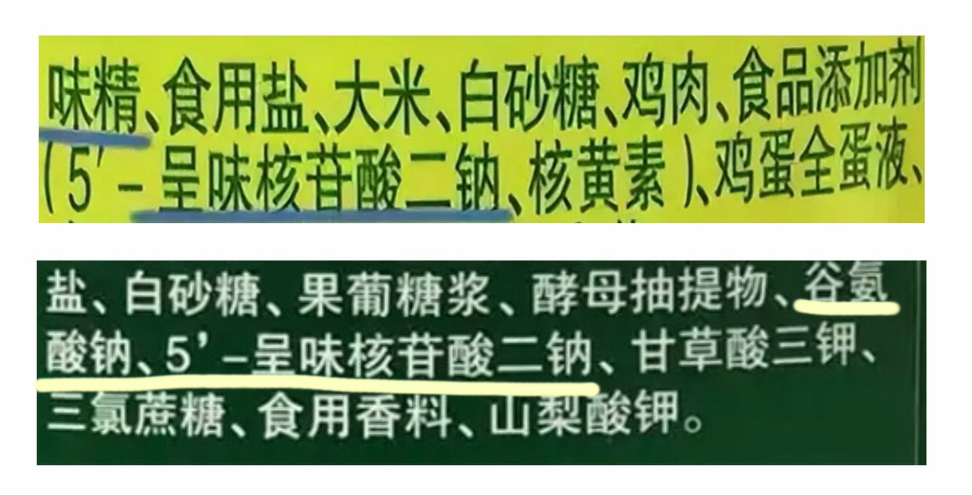 此外,一些食品配料中的成分同样含有钠元素,例如谷氨酸钠、呈味核苷酸二钠、碳酸氢钠等。这些“看不见的钠”,也是日常饮食中不可忽视的重要来源。